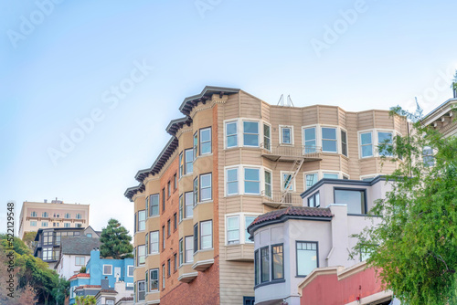 Fototapeta premium Low-rise residential buildings on a sloped suburbs of San Francisco, CA