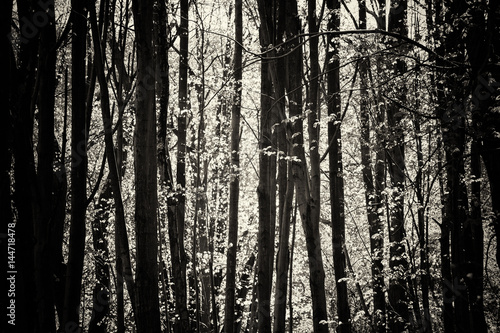 Fototapeta premium Low sun through trees in the woods