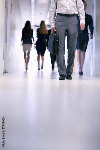 © xixinxing, Obraz premium Low view of people walking down the corridor in an office building