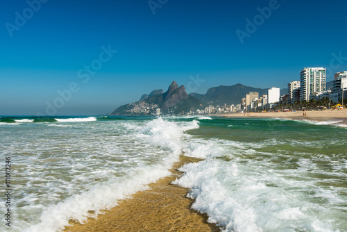 © Donatas Dabravolskas, Fototapeta premium Low Waves on the Sand of Ipanema Beach in Rio de Janeiro
