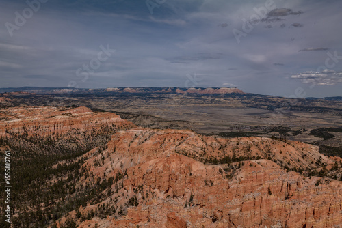 Fototapeta premium Lower Inspiration Point , Bryce Canyon National Park, Utah. Claron Formation, (Tcp) Pink member; mudstone, sistone, sandstone; weathers into picturesque cliffs, columns, spires, and pinnacles.