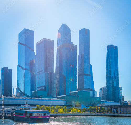 Fototapeta premium Lower Manhattan seen from Hudson river on a sunny morning