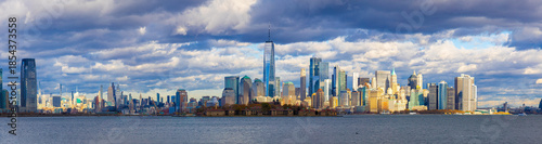 Fototapeta premium Lower Manhattan skyline across New York Harbor with Freedom Tower, NYC