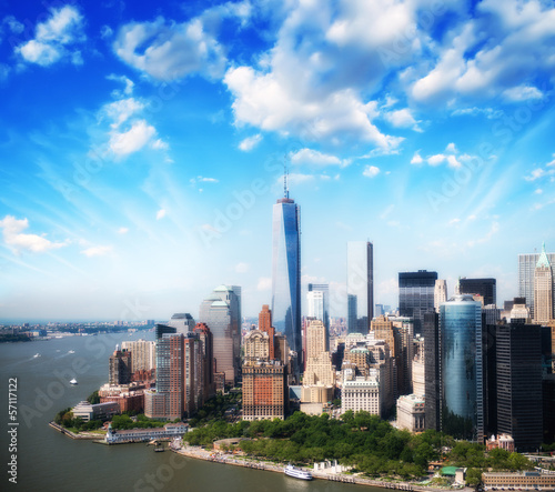 Obraz premium Lower Manhattan skyline and buildings. Beautiful aerial view at