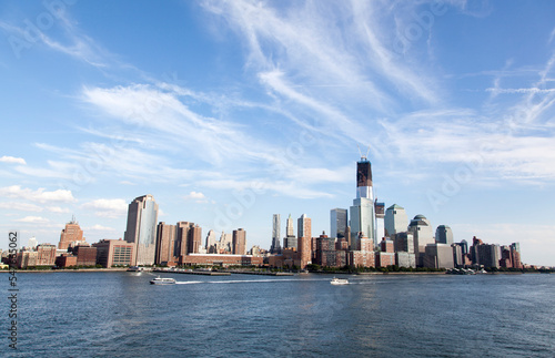 Naklejka premium Lower Manhattan Skyline And Ferry Boats
