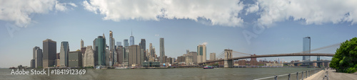 Naklejka premium Lower Manhattan skyline captured from Brooklyn with city skyscrapers and...