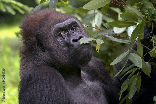 Obraz premium Lowland silverback gorilla in the forest