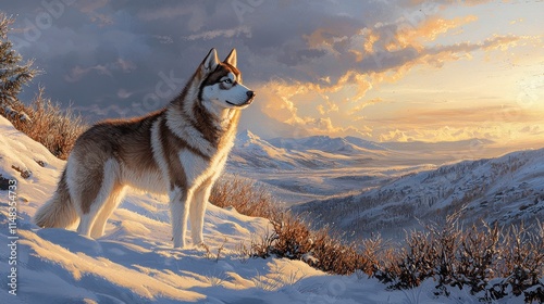 © Nit Nitchalernxai, Obraz premium Loyal Husky Looking into Distance