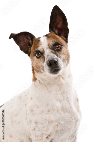 © DoraZett, Fototapeta premium Älterer Terriermischling isoliert auf weißem Grund