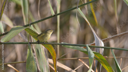 Fototapeta premium Luì piccolo posato sui rami delle canne nella palude, in autunno