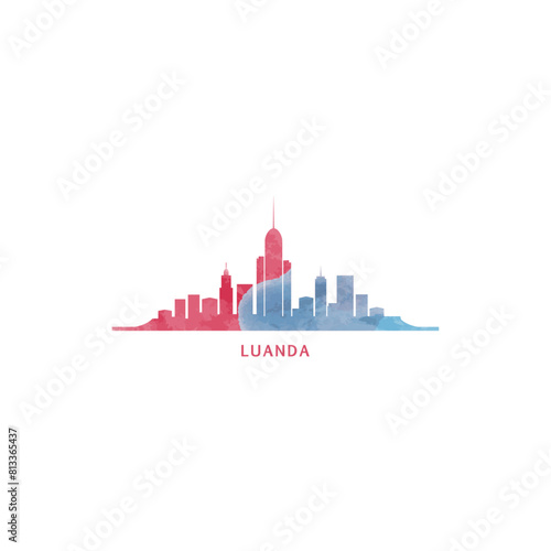 © Anastasiia, Naklejka premium Luanda watercolor cityscape skyline city panorama vector flat modern logo, icon. Angola capital emblem concept with landmarks and building silhouettes. Isolated colorful graphic