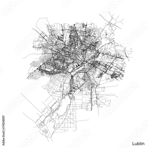 © eestingnef, Fototapeta premium Lublin city map with roads and streets, Poland. Vector outline illustration.