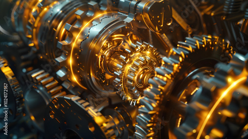 Fototapeta premium Lubrication in High-Speed Gears: High-speed mechanical gears in motion, surrounded by a glowing, efficient lubricant film that minimizes friction and wear