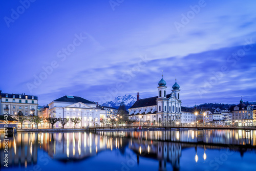 © Sarah, Fototapeta premium Lucern at night, Switzerland