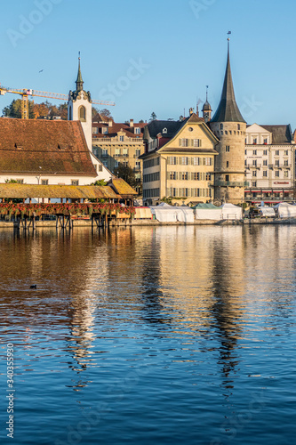 © Luca, Obraz premium Lucerne reflected in the water in a sunny day