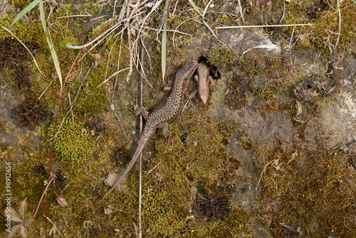 © coloroby, Obraz premium lucertole sopra un muretto di muschio