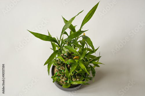 Fototapeta premium Lucky Bamboo Plant. Small bamboo in the pot. Isolated on white background. Close up.