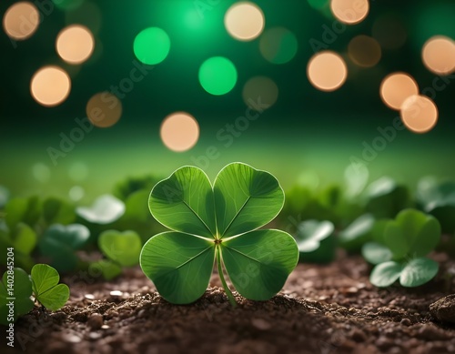 Naklejka premium Lucky Four-Leaf Clover in the Ground at Night