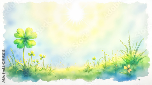 © Natalia, Fototapeta premium Lucky Shamrock in Spring Sunshine with Copy Space