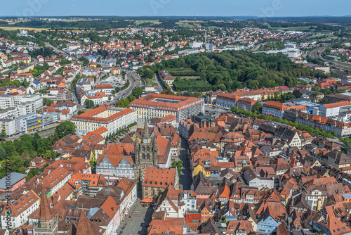 Fototapeta premium Luftaufnahme der Stadt Ansbach an der Fränkischen Rezat im Sommer