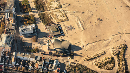 Obraz premium Luftbild vom Leuchtturm und dem Teepott im Ostseebad Rostock Warnemünde