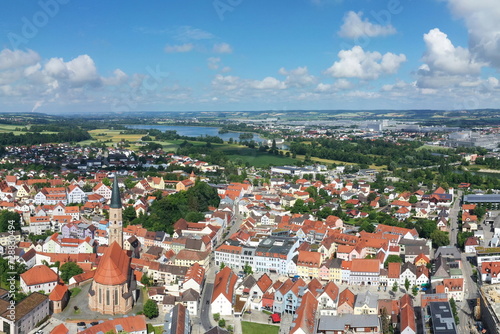 Obraz premium Luftbild von Dingolfing mit Blick auf die historische Altstadt. .Dingolfing,...