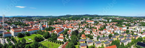 © fotoping, Obraz premium Luftbild von Kempten mit Basilika Sankt Lorenz bei schönem Wetter