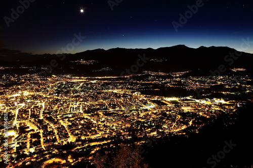 Fototapeta premium Lugano aus der Luft bei Nacht