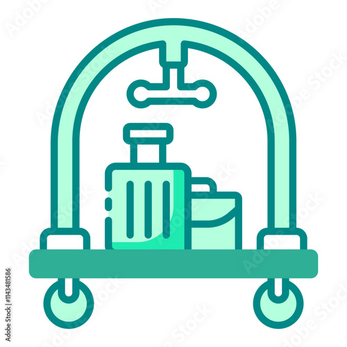 Fototapeta premium Luggage cart service green filled line icon for transporting guest baggage