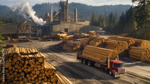 © muhammad, Obraz premium Lumber Mill Operation: A Modern Forestry Industry