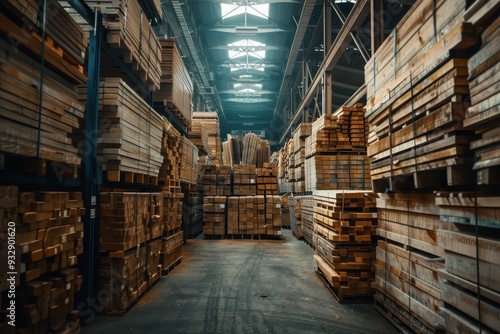 Fototapeta premium Lumber stored in warehouse