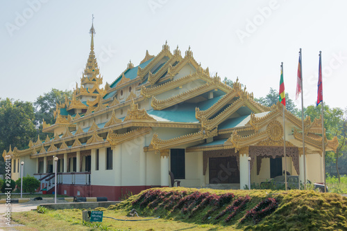 Fototapeta premium Lumbini, Nepal - Dec 10 2017: Myanmar Golden Temple in Lumbini, Nepal. Lumbini, the Birthplace of the Lord Buddha and The Eight Great Places.