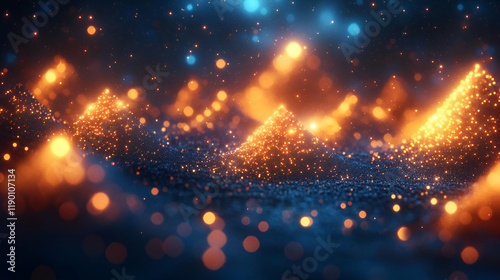 © Mandan, Naklejka premium Luminous Abstract Background with Glowing Particles and Dynamic Waves