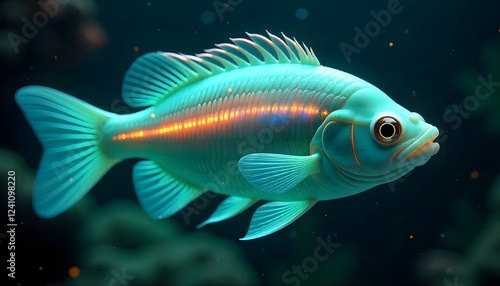 Fototapeta premium Luminous Aquatic Creature: A Teal Fish with Orange Highlights