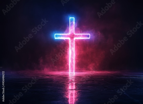 Fototapeta premium Luminous blue and red curved lines, characterized by their abstract nature, converge to create a dynamic and symmetrical pattern against a dark, futuristic-looking backdrop