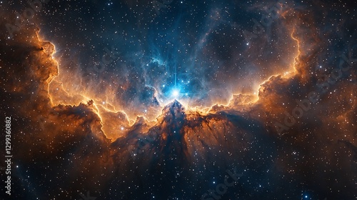 © EpochXstudio, Fototapeta premium Luminous Blue Variable star in the Tarantula Nebula its powerful stellar winds shaping the surrounding gas clouds