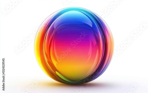 © Marina, Obraz premium Luminous bubble texture blending into rainbow reflections, isolated on clear white background