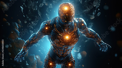 © Choky, Fototapeta premium Luminous Cyborg Emerging from Digital Particles