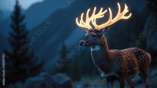 Fototapeta premium Luminous deer horns, magical deer, whimsical scenery, high-res picture