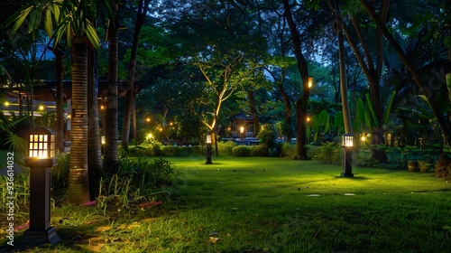 © nuryadin, Obraz premium Luminous Garden Path at Night