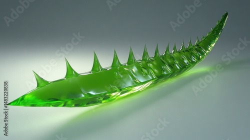 Naklejka premium Luminous Green Aloe Vera Leaf, Nature's Remedy, Glistening Gel, Spiky Texture, Herbal Beauty