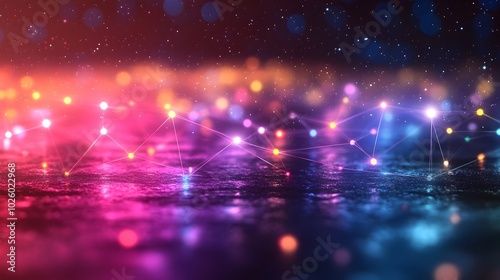 Obraz premium Luminous Holographic Web of Interconnected Neon Nodes Floating in Vibrant Ambient Space