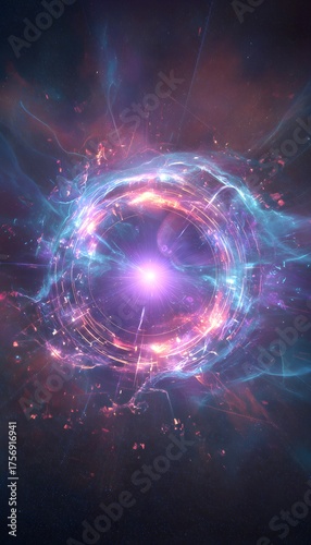 Obraz premium Luminous interdimensional portal glows amidst cosmic dust a vibrant futuristic space design