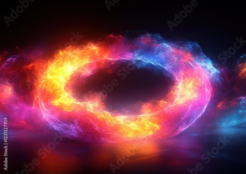 Fototapeta premium Luminous Iridescent Circular Abstract Design with Neon Lighting