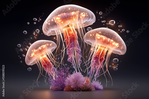 Fototapeta premium Luminous Jellyfish Glow in Dark Ocean