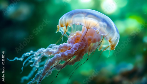 © Tech, Obraz premium Luminous jellyfish, vibrant colors, underwater scene, bioluminescent