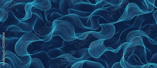 Obraz premium Luminous light blue lines create a captivating seamless pattern against a dark blue backdrop with fluid wave-like movement and depth.