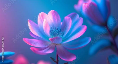 Fototapeta premium Luminous Lotus. A Captivating Display of Floral Beauty in Neon Hues, a Stunning Blossom.