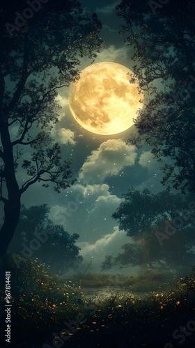 Fototapeta premium Luminous Moonlight Glade Ethereal Forest Dreamscape in Impressionistic Style