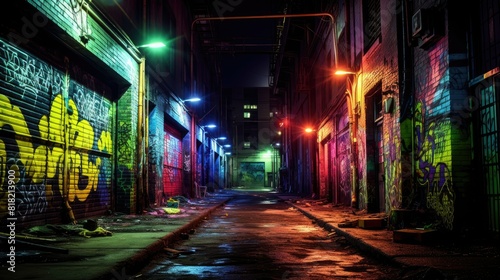 © Azel, Fototapeta premium Luminous neon lights illuminating dark alley